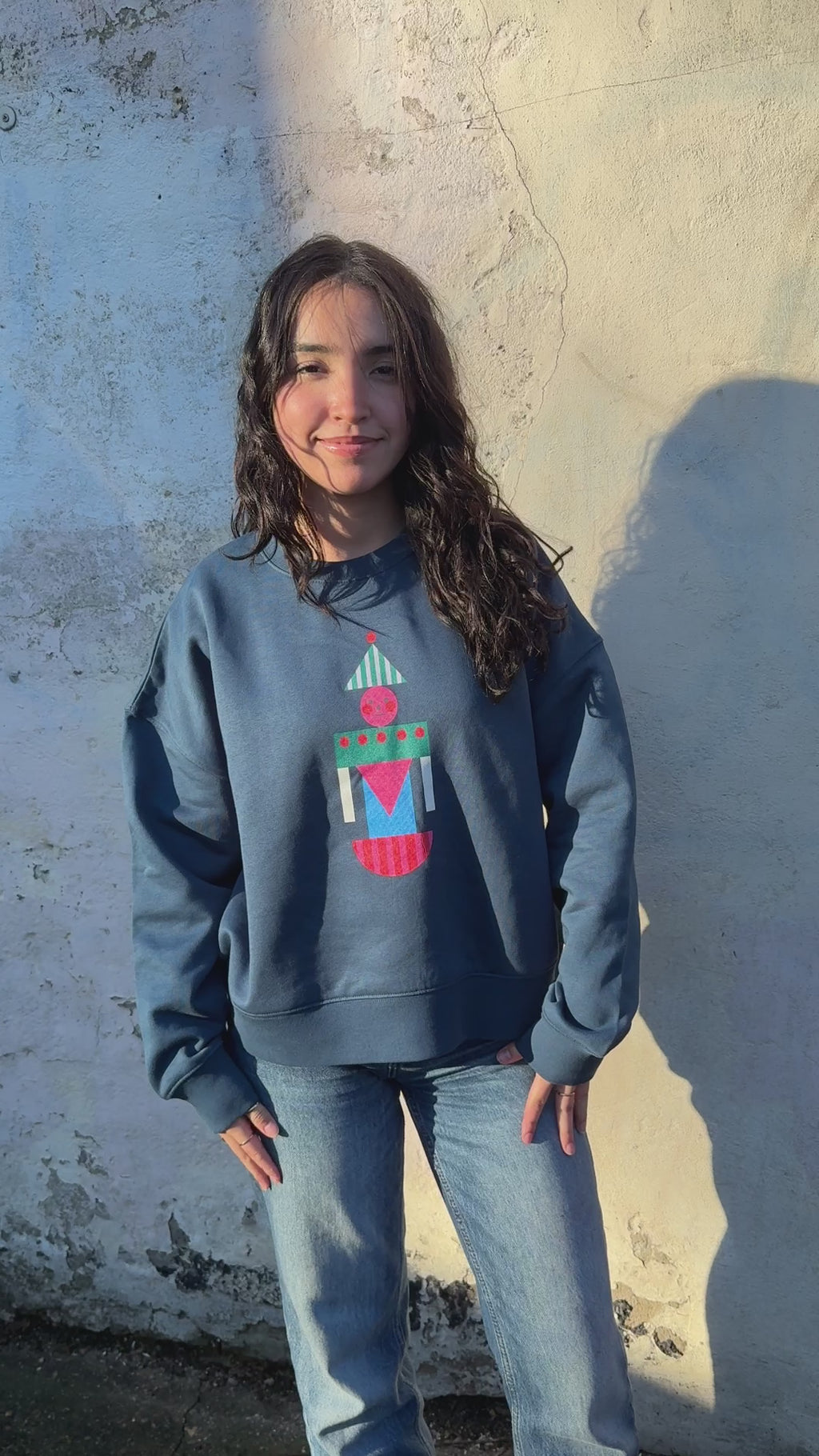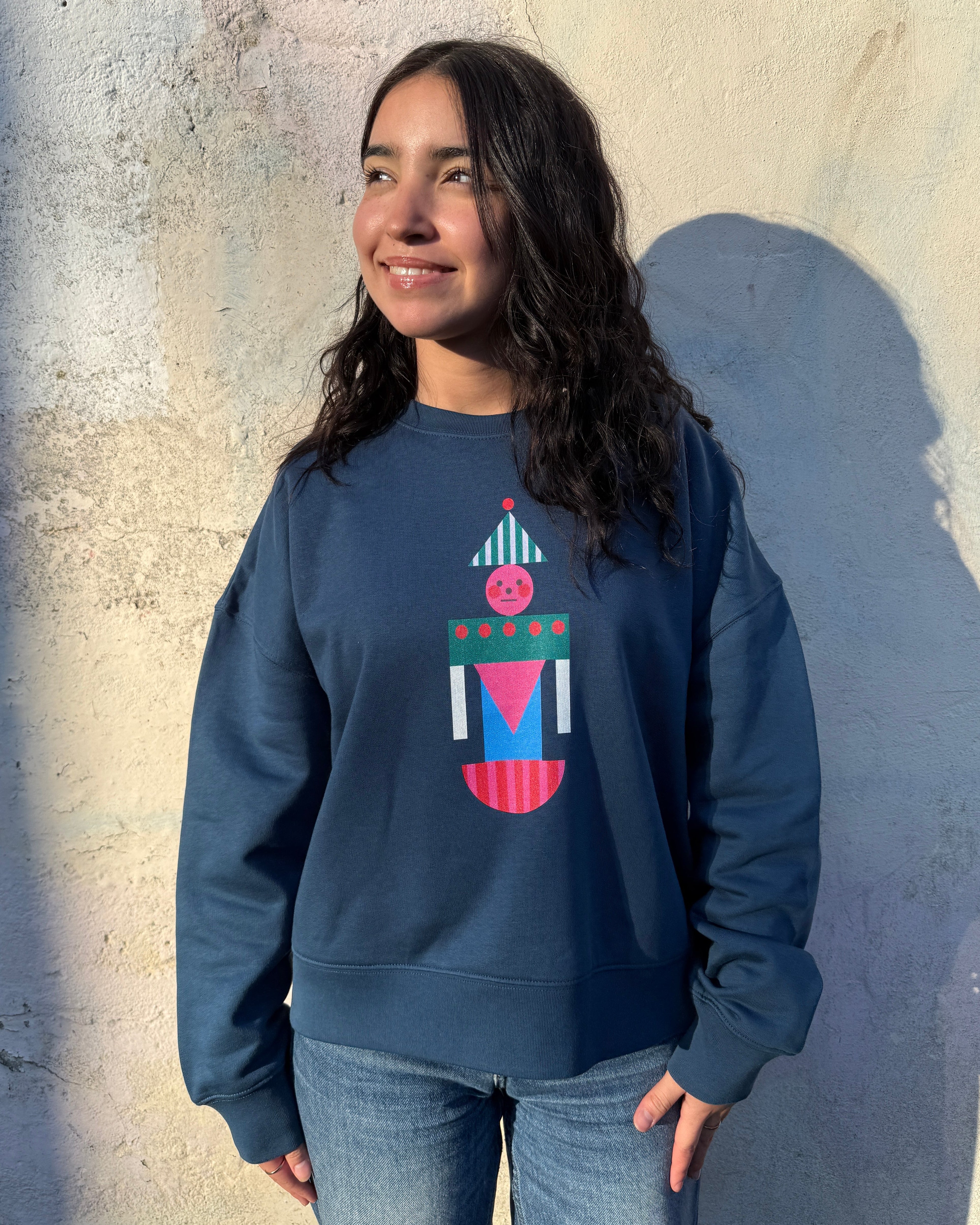 The Toy Soldier Sweatshirt is a flattering boxy fit, finishing on the hip and made from soft organic cotton. Printed in the UK using eco-friendly, GOTS-certified inks, it features Miss PomPom’s playful Toy Soldier graphic — a bold, geometric character made up of joyful colour and shape.